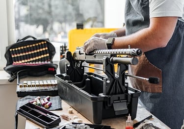 Armëpunuesit tonë të specializuar ju ofrojnë zgjidhje dhe riparime në cfarëdo që keni nevojë, si servisime, lyerje riparime te detajuara dhe pastrime armësh.